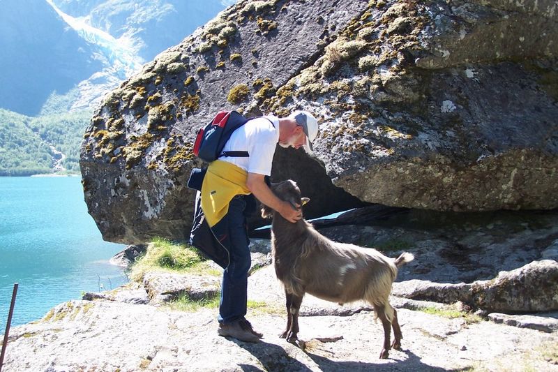Willi mit Ziege am Gletschersee